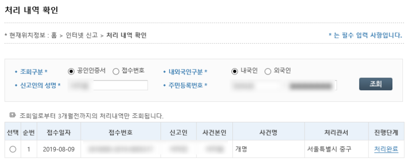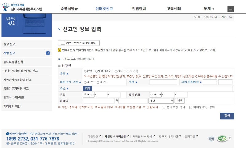 (본명 변경) 온라인 개명 신청 방법