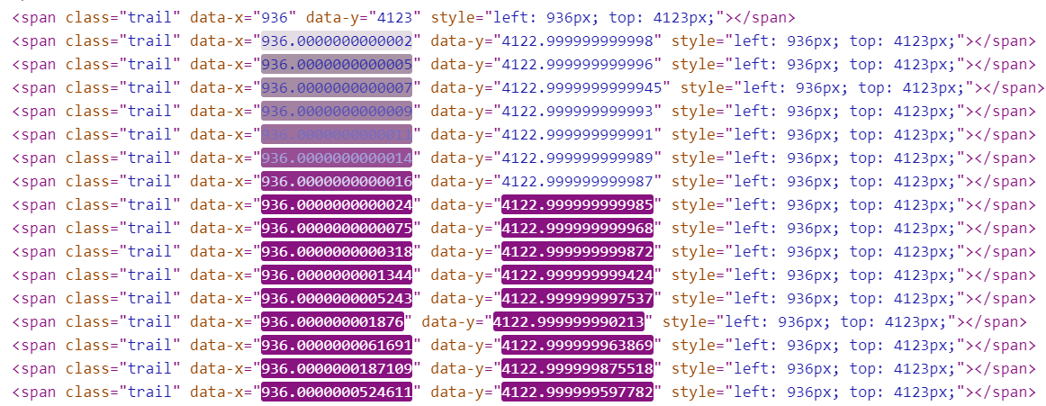 정확하지는 않지만 requestAnimationFrame() 함수로 span 태그를 통해 애니메이션을 화면에 표시하는 것 같습니다.