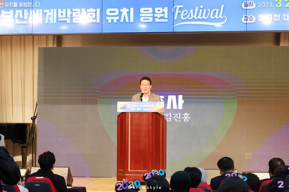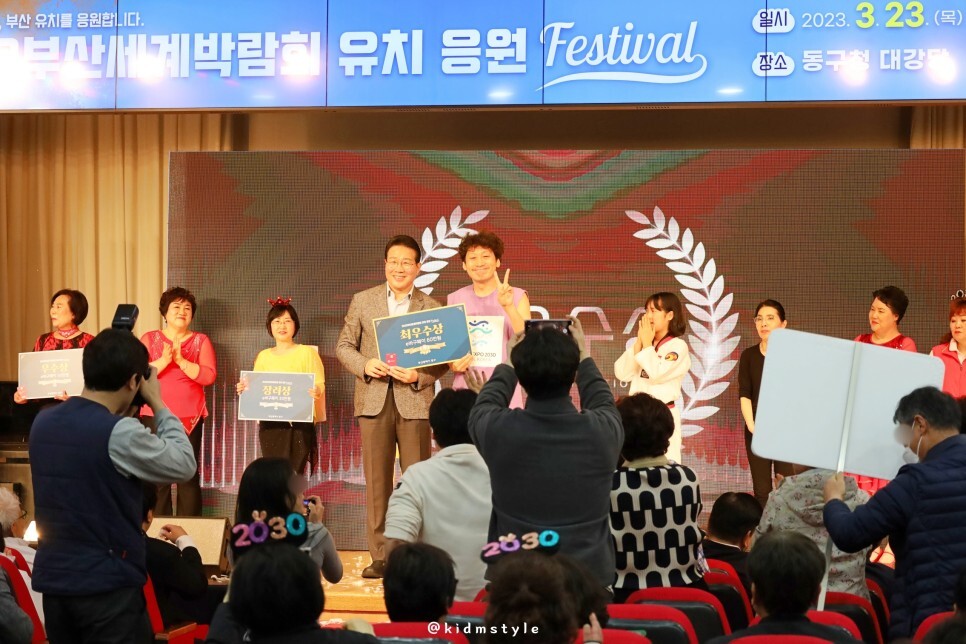 이러한 노력과 더불어 동구청에서 특별행사를 열어 낙찰을 응원하는 사람들의 열정을 모아 우리 사회에 만국박람회 분위기를 확산시켰다. 2030 부산세계엑스포 개최지원 페스티벌! 어떤 행사였는지 그 날의 설렘을 소개해드리겠습니다.