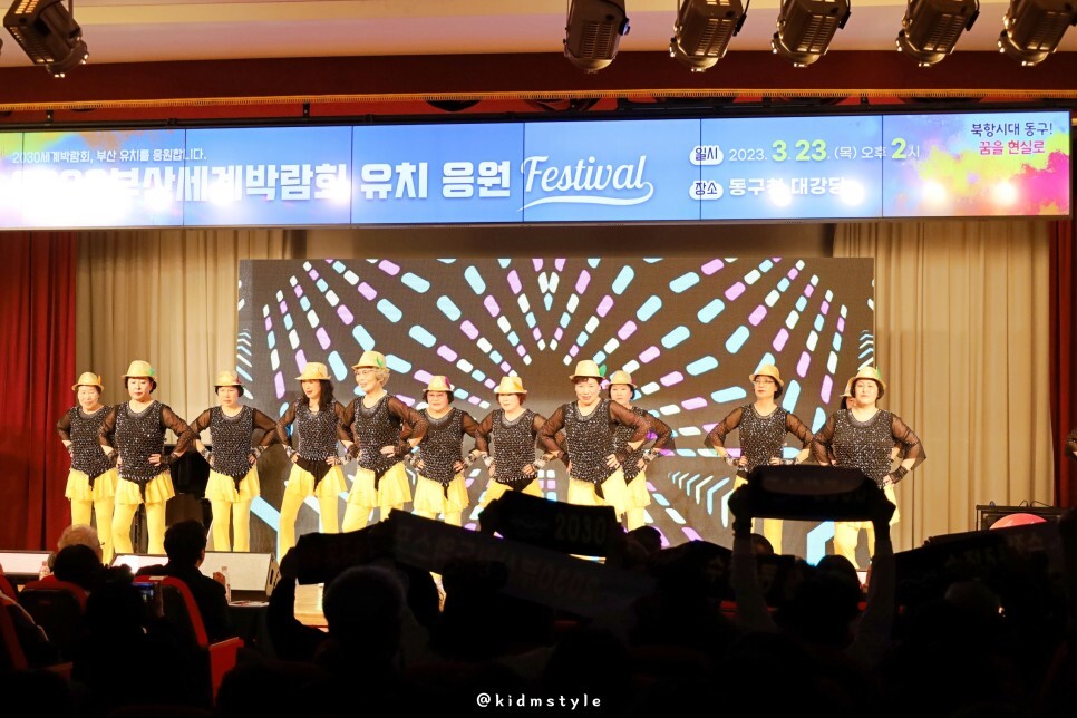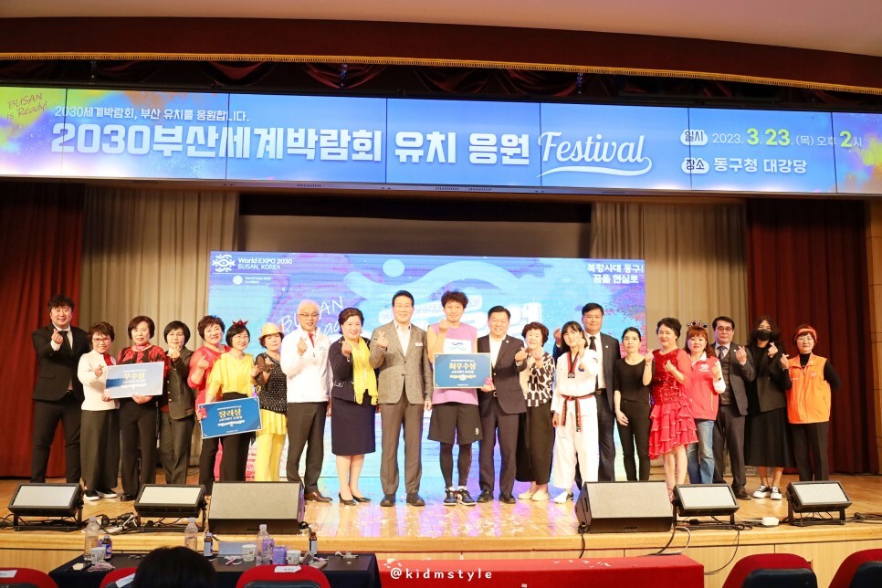 환호와 ‘2030 부산 엑스포 동구’라는 문구가 퍼지는 무대도 흐뭇하다.