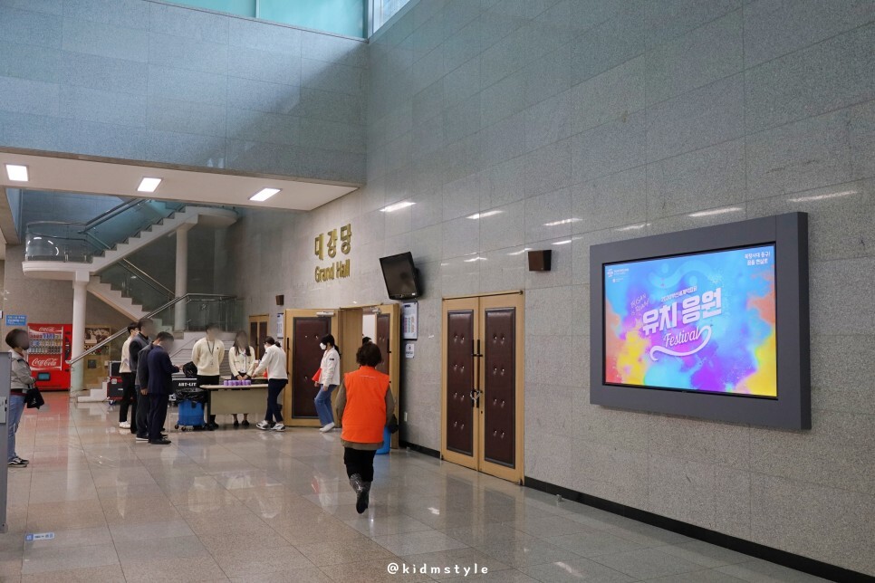 행사가 열리고 있는 구청 1층 대강당으로 걸어가며 사진을 찍었습니다. 행사 전 설렘이 느껴진다. 오늘 행사는 어떻게 진행될지 매우 기대됩니다. 저는 동구민으로서 동구에 살면서 다양한 행사에 참석하면서 동구가 흥겨운 도시라는 것을 느꼈습니다. 그래서 오늘 행사가 정말 기대됩니다.
